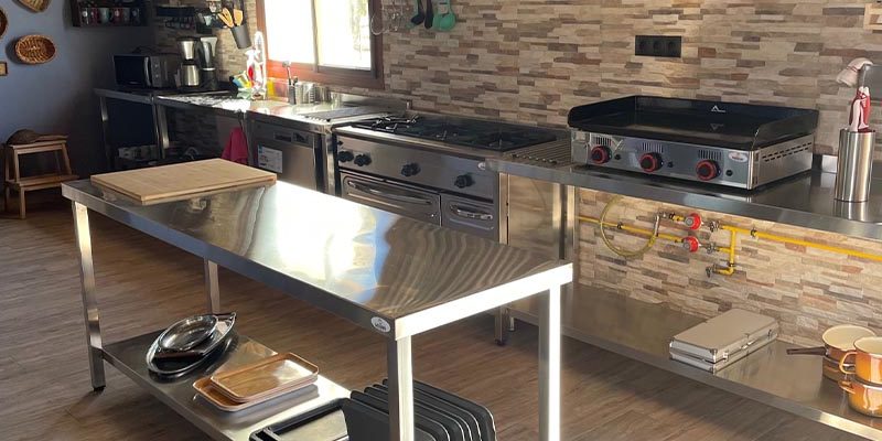 En nuestra cocina completamente equipada con elementos de cocina industrial podrás tener una experiencia única de cocina. Preparada para cocinar hasta para 20 comensales sin problemas. Aunque a lo mejor prefieres utilizar nuestra parrilla de leña de más de un metro de ancho. ¡Tú eliges!